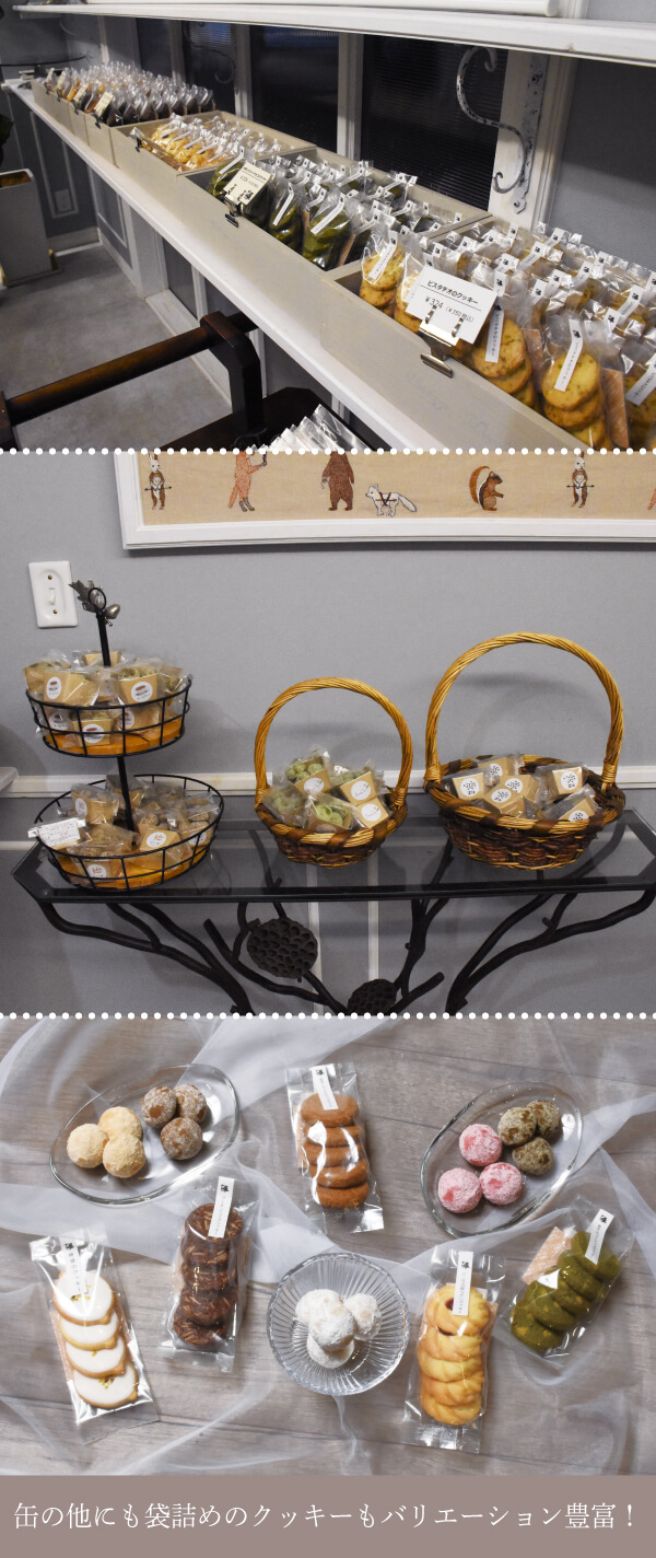 :私が焼き菓子を好きで。アトリエうかいさんとか、京都のよねむらさんのクッキーがすごい好きなんです。5、6年前にここを始める前は…特に経験とかなくて、販売はここが全くの初めてでしたね。